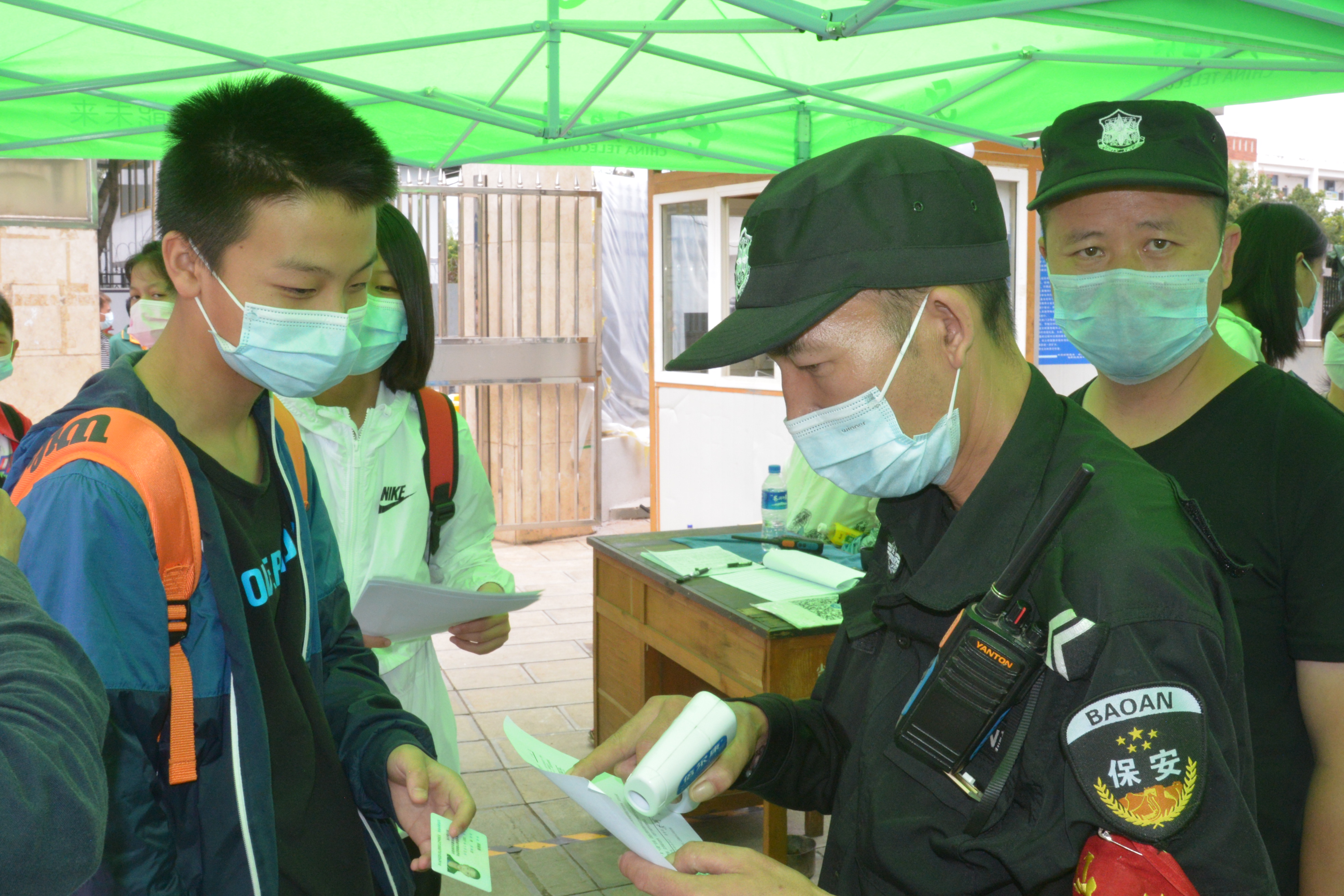 学校安排了相关教师针对可能出现的诸如体温异常者、未戴口罩者、校外人员、情绪异常者等特殊情况进行了模拟演练。