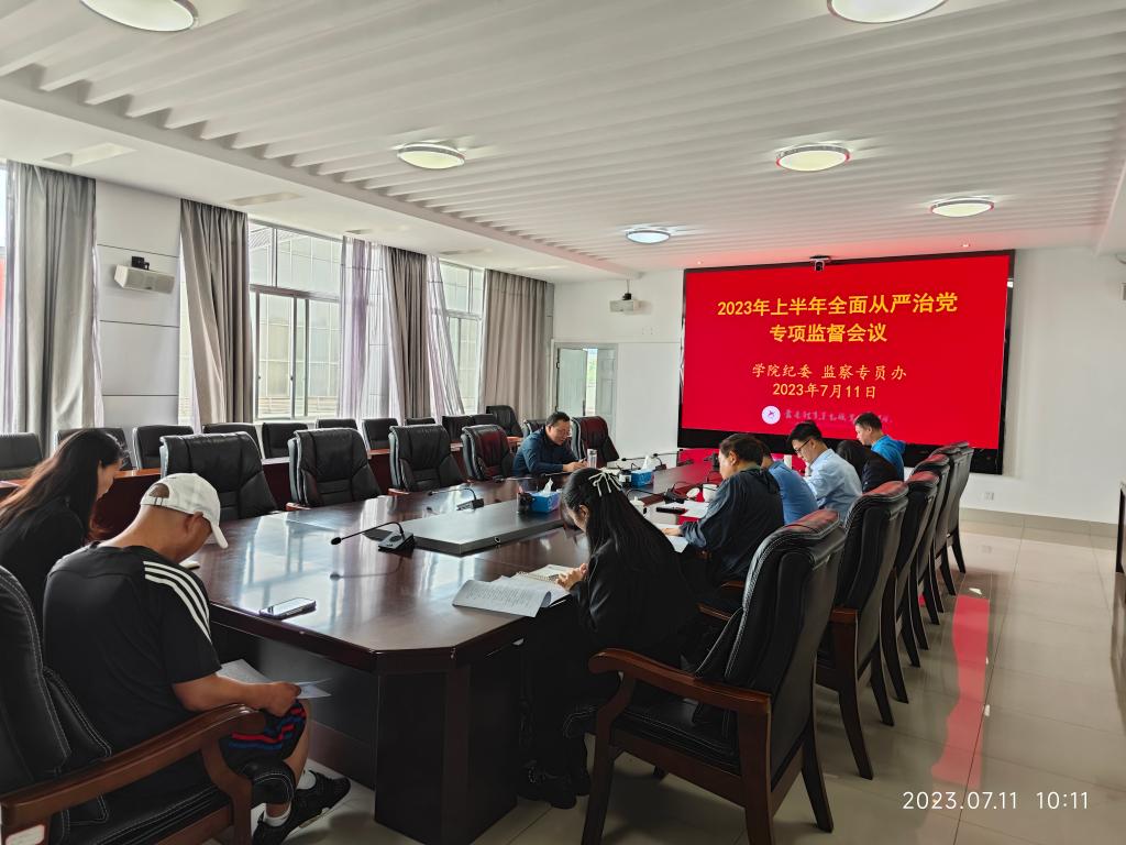 7月11日上午,allwincity万象城官方网站纪委监察专员办在教2楼第一会议室召开2023年上半年全面从严治党专项监督会议。会议由学校纪委书记、监察专员金吉斌主持。