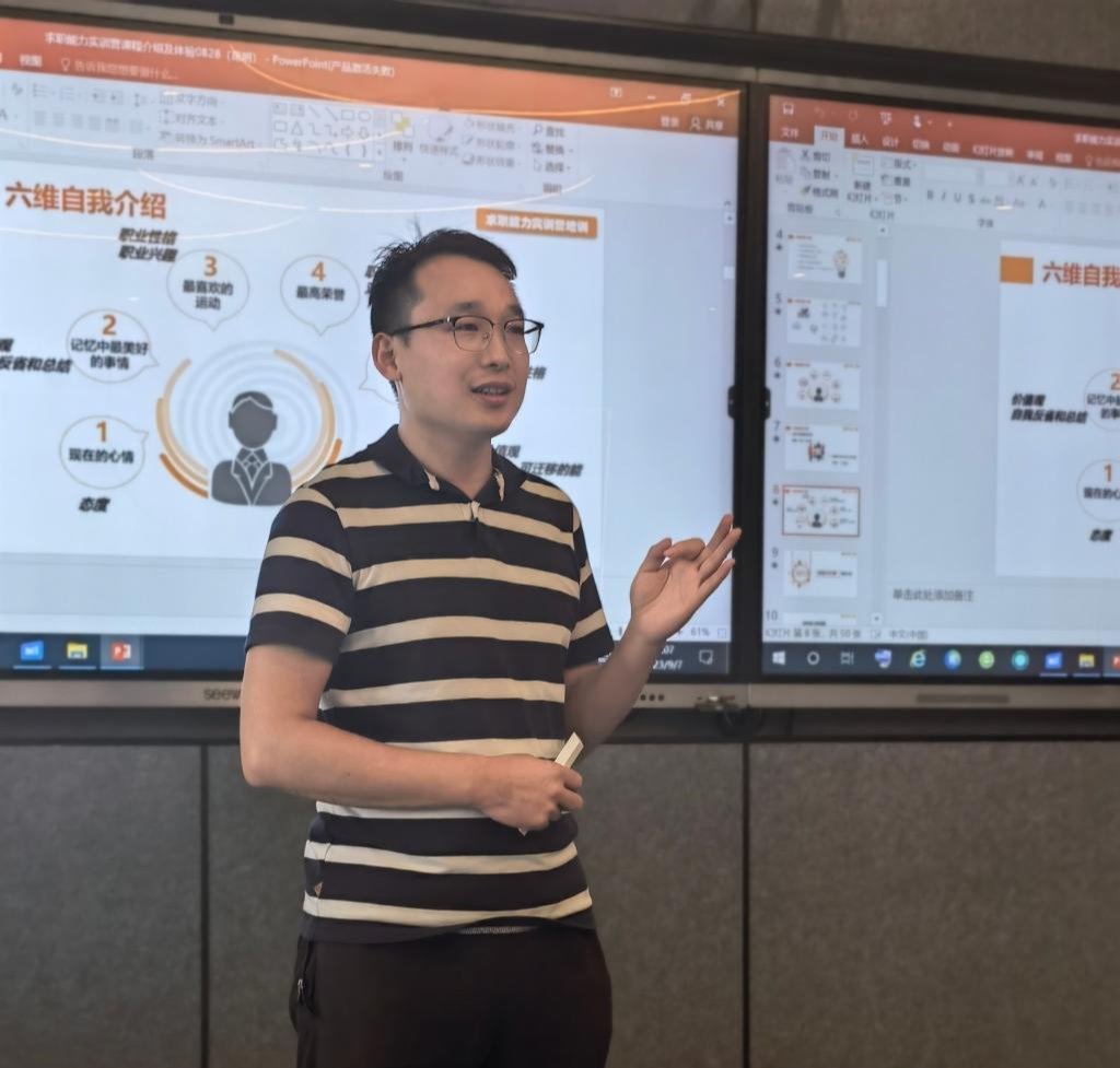 会议开始,社会体育与管理学院书记杨雪雯老师结合在校工作几十年的经验和感受,分享了参加“云南省高校生涯咨询师师资培训班”的心得。接着,门老师分享了参加“职业指导师师资培训班”的收获,重点讲解了“六维自我介绍”。两位老师均表示培训对教师的成长十分有帮助。随后,万象城官网资深职业生涯规划课教师张立国老师从教材分析、教学内容选取、课件使用、考核方式等方面进行讲解,有效帮助新教师快速站稳讲台。张老师希望老师们能快乐工作,让兴趣成就事业。