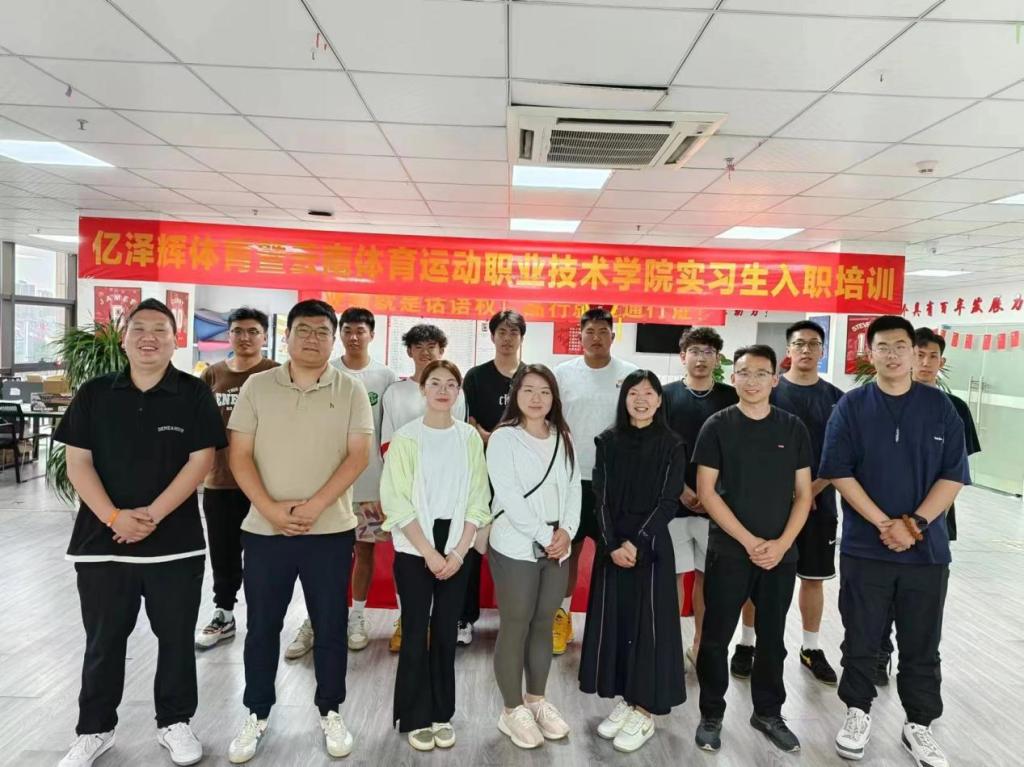为搭建毕业生实习就业平台,畅通实习生、企业双向选择渠道,云南体育运动职业技术学院于5月27日送学生到亿泽辉教育集团实习,8名同学由招生就业处王娅玲、体教学院门通路和运教学院黄中钦3位教师一同前往亿泽辉体育集团(苏州)有限公司。