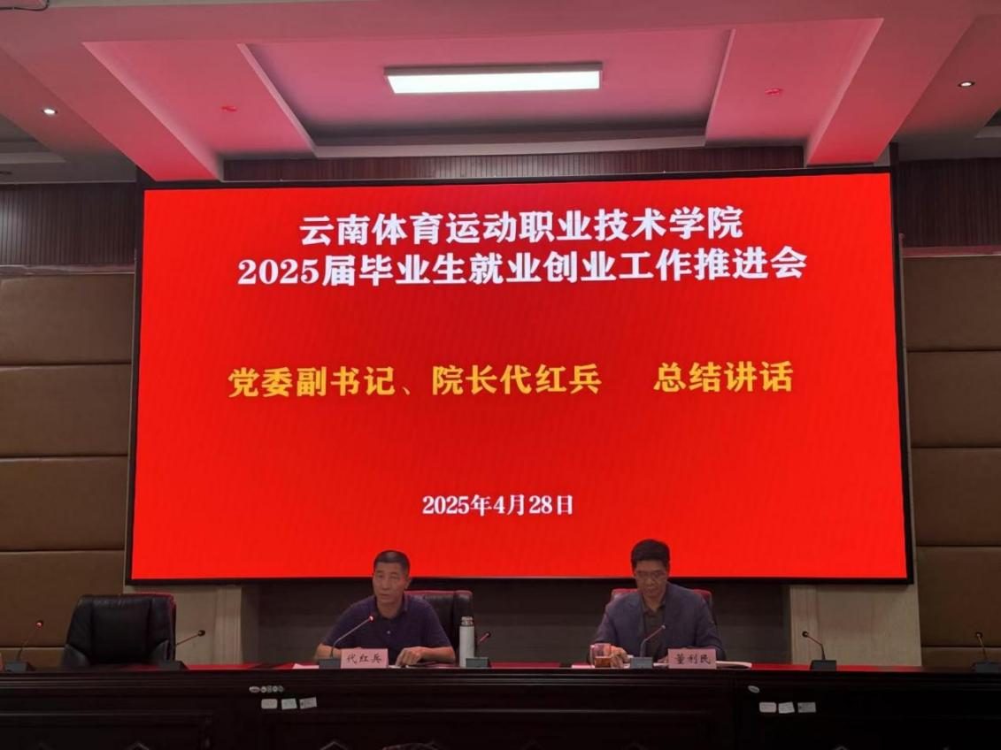 2025年4月28日下午,allwincity万象城官方网站在云帆楼第一报告厅召开2025届毕业生就业创业工作推进会,深入贯彻落实全国及云南省高校毕业生就业创业工作会议精神,全面部署2025届毕业生就业创业工作。学院院长代红兵、副院长董利民出席会议并讲话,各二级学院党政负责人、招生就业处全体工作人员及全体辅导员参加会议。