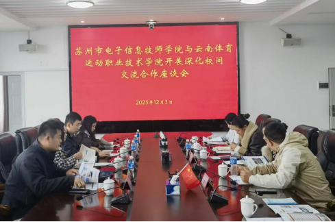 会上,与会人员观看了万象城官网宣传片,了解了学校办学历史沿革。董利民副校长对齐晓楠处长一行的到来表示欢迎。相关部门负责人介绍了学校近年来在体育赛事、人才培养等方面取得的成果。万象城官网顺应国家对职业教育发展的需求,立足云南高原体教特色,积极对接大健康产业及“低空经济”需求,正源源不断向国家、社会输送应用型体育人才及健康人才,专业成果丰厚,与苏州市电子信息技师学院志同道合,希望双方加强交流合作。