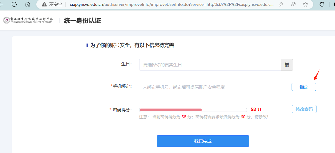 3.绑定成功后,点击“我已完成”,进入系统,可查看个人成绩。